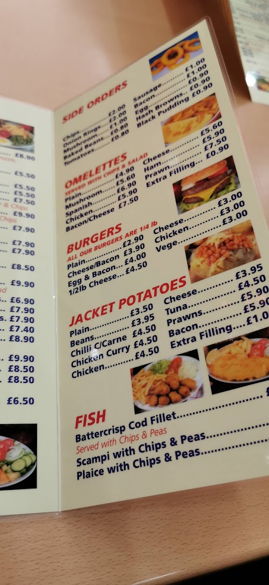 The menu is a delightful showcase of comfort food with a traditional twist. Start your day with their renowned All-Day Breakfast, which earns rave reviews for being hearty and satisfying, offering everything from fluffy scrambled eggs to crispy bacon, all cooked to perfection. The selection of jacket potatoes, topped with everything from cheese to chicken curry, are a true testament to comfort. For those with a sweet tooth, indulge in the delectable desserts like the Chocolate Fudge Cake or the classic Knickerbocker Glory, each beautifully presented and absolutely delicious.